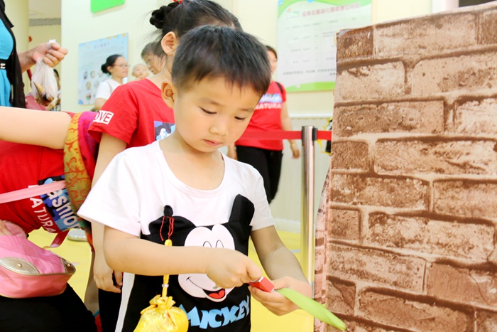 在親子游園活動中,各班教師結(jié)合端午民俗設計了《賽龍舟》《芝麻開門》《猜謎樂》《沙漠尋寶》等有趣的游戲,每個家庭積極參與游戲就會得到小簽章,集齊所有的簽章就會得到包粽子的機會,包好兩個粽子又會獲得香囊的禮物。在一個接一個扣人心弦的游戲中,孩子們學會了敢于嘗試、勇于挑戰(zhàn);在濃濃的節(jié)日氣氛里,孩子們獲得了快樂、自信與成長。